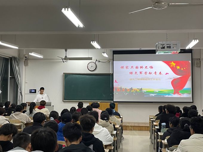军为国之柄,强国必强军。为响应国家号召,锚定新时代强军目标、响应我国建设世界一流的军队的召唤,激发QY球友会体育学生热爱国防、建设国防的政治热情。11月4日,QY球友会体育于九教404室举办“保家卫国终不悔,绿色军营献青春”征兵宣传活动。QY球友会体育2022级新生参加了本次活动。
